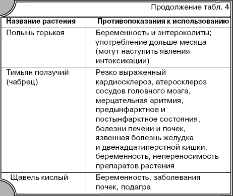 Таблица 4. Противопоказания к использованию некоторых лекарственных растений