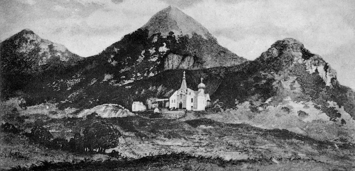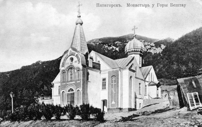 В те же дни, проходя курс лечения минеральными водами, монах Сергий присматривался к окрестностям Пятигорска, беседовал с местными жителями и познакомился с Д.П. и Ф.С. Шишковыми, В.В. Хвощинским, которые позднее много помогли монастырю. Особенно глубокое впечатление на него производила гора Бештау, самая высокая и величественная на территории Кавказских Минеральных Вод. Очертания прекрасного Бештау напоминали отцу Сергию далекую Афонскую гору10. Встретив приехавшего из Петербурга отца Иоанна, Сергий поделился с ним своими наблюдениями. Для устроения монастыря отцами единодушно была избрана гора Бештау как подобие Афона на Русской земле. Директор Минеральных Вод В.В. Хвощинский отвел для строительства монастыря земли с условием, что иноки заведут молочное хозяйство для нужд отдыхающих. Ходатайство о выделении земли было удовлетворено и министром земледелия.