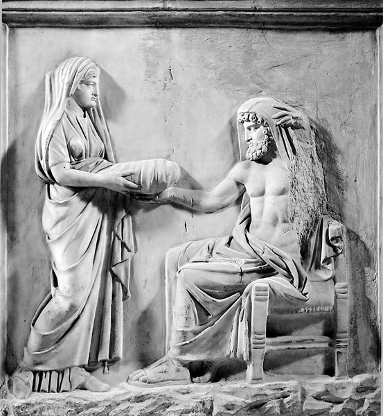 Рея дает Крону камень. Пелика мастера Навсикаи. Ок. 460 г. до н. э.
