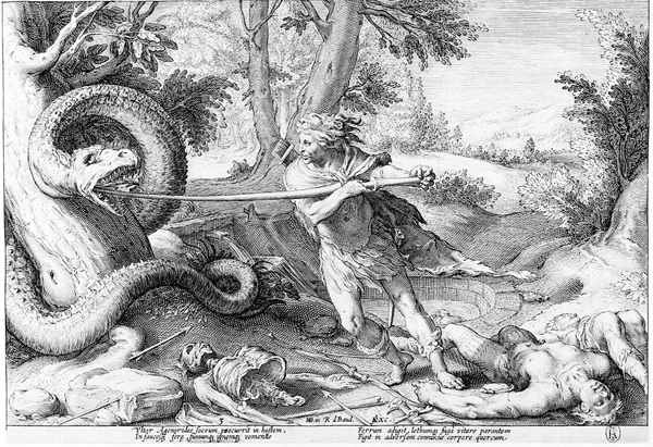 Х. Голциус. Кадм убивает дракона у фонтана. 1615