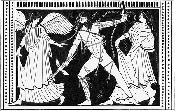 Как Зевс – разъезжал он по стране в колеснице, похожей на колесницу Громовержца, и при этом разбрасывал по пути горящие факелы, которые должны были заменять молнию, топот же копыт о железные мосты изображал гром. Он приказывал убивать невинных странников и говорил потом, что убил их своей молнией.