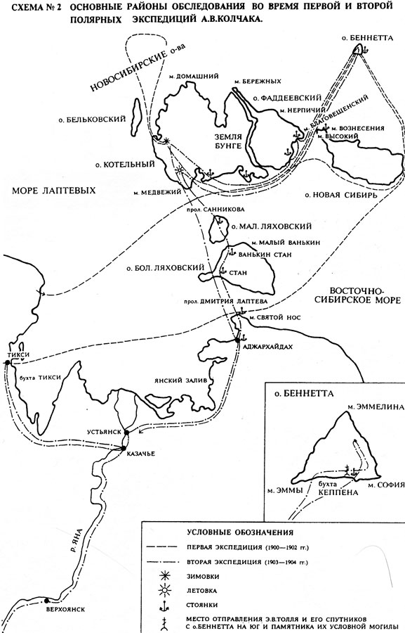 Колчак редко принимал участие в охоте. Больше всего времени он проводил за составлением отчета о своей вспомогательной экспедиции, изучая документы барона Толля, оставленные им результаты исследований Земли Беннетта. Вероятно, именно тогда он начал писать и свою «полярную записку» о подготовке и ходе Русской полярной экспедиции, которая уже многократно цитировалась выше.
