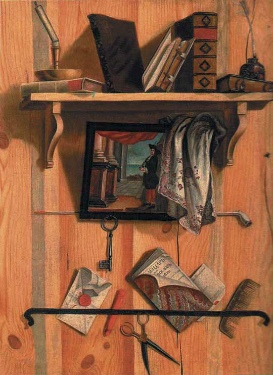 Сравнивая «Аллегорию бренности бытия» с картиной Г. Н. Теплова («Натюрморт "обманка"», 1737. МУО) или со схожим произведением неизвестного художника («Натюрморт-"обманка"», 1737. МУО), отметим азарт, с каким новый русский человек познает барочный эмблематический лексикон, не столько осваивая театр вещей[15], сколько играя знаками. Для нового молодого героя (а оба автора – студенты, салаги, школяры) свежо и остро звучат зашифрованные «моралите» о бренности земной юдоли и дольних удовольствий, представляемых тщательно выписанными конвертами с любовными письмами, «маринами», носовыми платками, чучелами птиц, ключами без замков etc.[16] Частое, а то и обязательное присутствие в этих композициях карманных часов – не просто следствие моды, а скорее знак того, что античный круг времени и средневековая стрела-вектор совместились в нововременной метафоре, в возрожденческом образе часов как стрелы в круге, как вектора с началом в центре окружности[17].