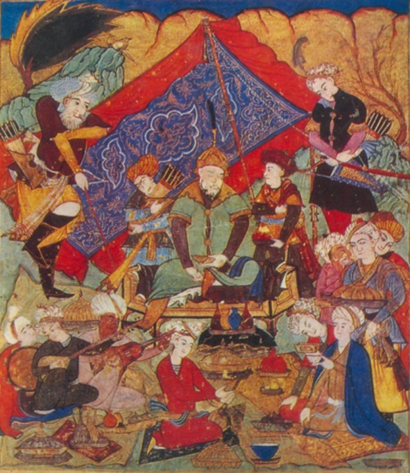 Миниатюра «Темур на пиру в Самарканде» из труда Шараф ад-дин Али Йезди. «Зафар-наме», XV в.