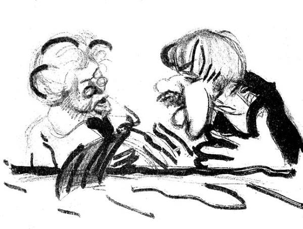 И. Е. Репин и К. И. Чуковский. Шарж. 1915