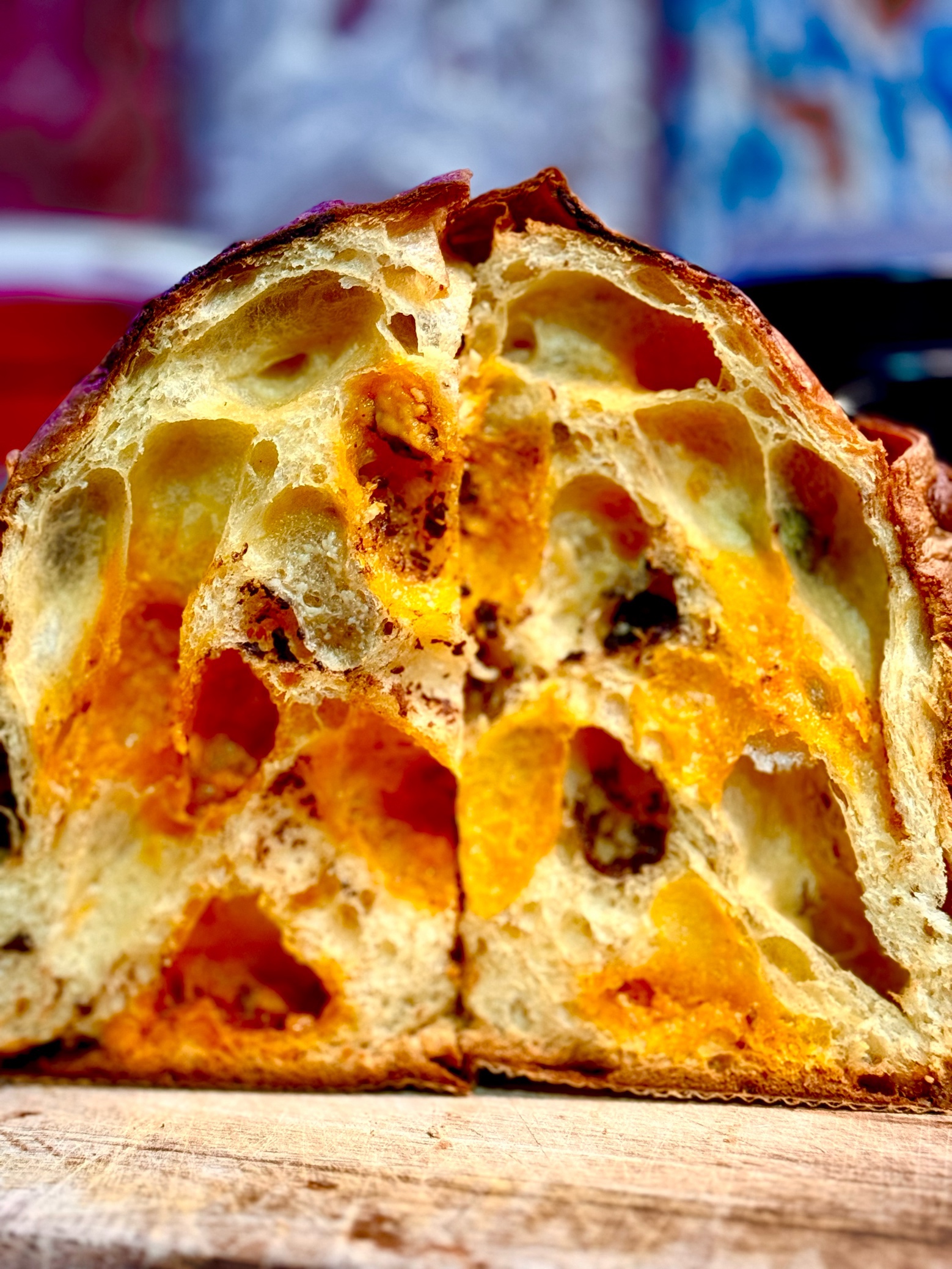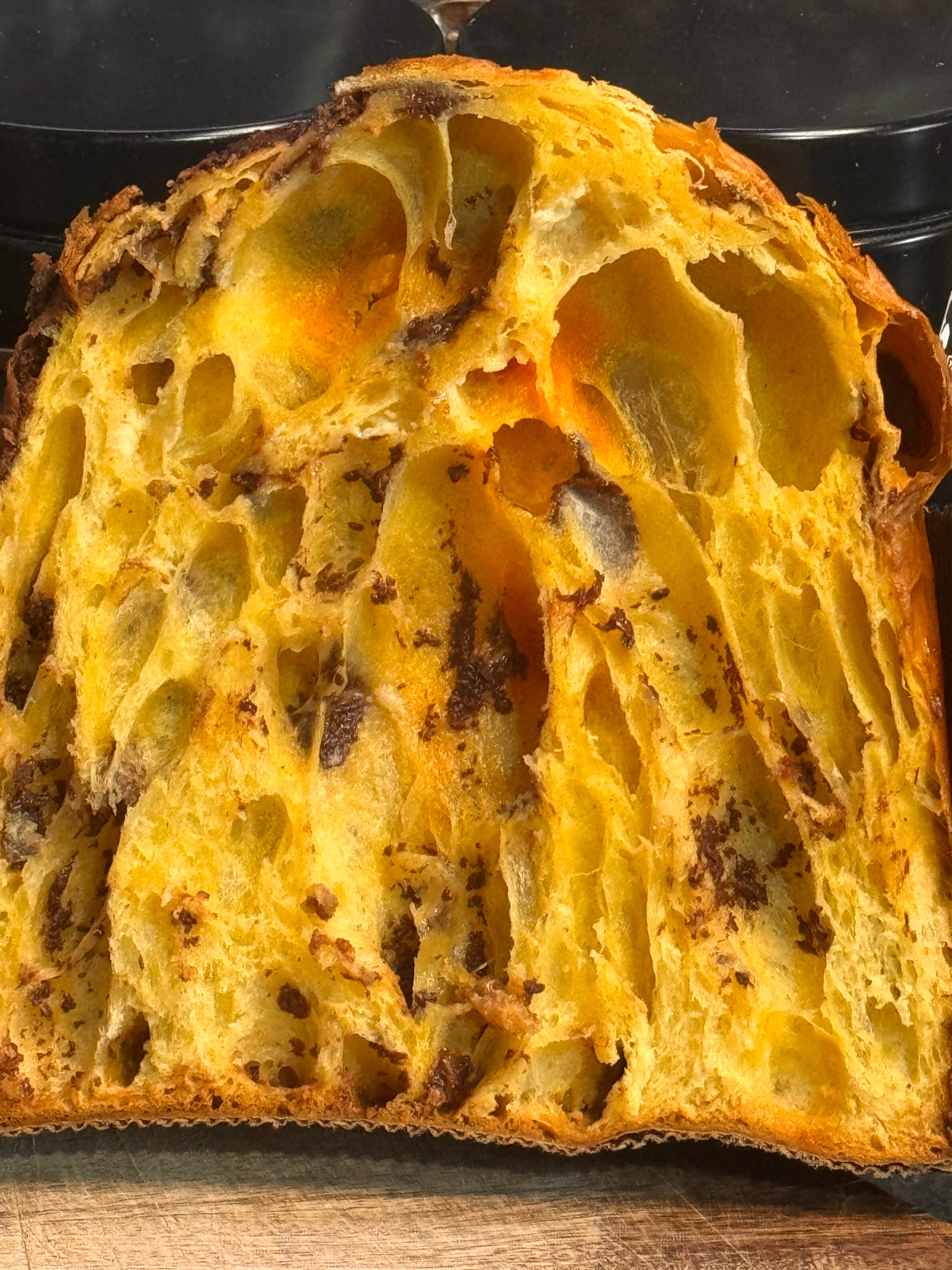 Фото панеттона с просевшими от собственного веса альвеолами. Посмотрите, как им тяжело, как они готовы «наложиться» друг на друга. Закладка в капсулы 110%
