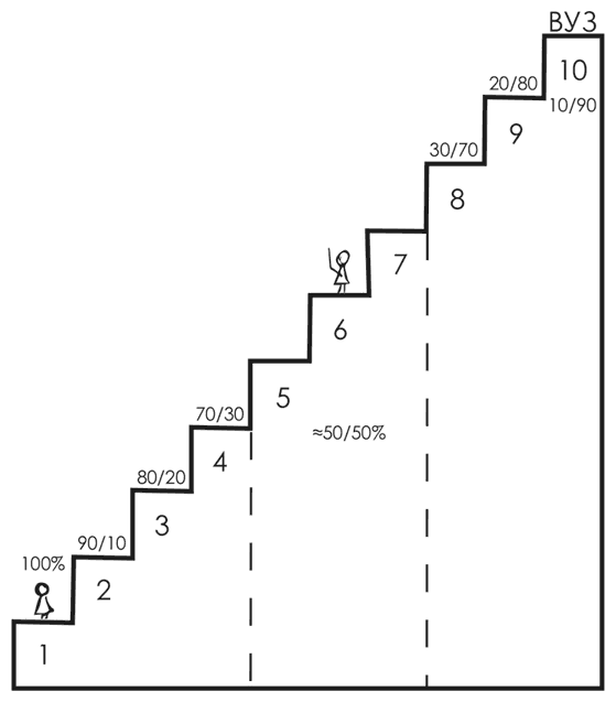 Из года в год меня преследует один сон. Я поднимаюсь вверх по лестнице. Все бы ничего, да только лестница всегда напоминает лабиринт Минотавра. Я точно знаю, что мне просто жизненно необходимо подняться наверх, обычно там дети или мои близкие в роли приманки. А не могу по-простому. Нужно преодолевать кучу препятствий, пролезать через узкие лазы, перелетать с одной ступеньки на другую, а они очень далеко друг от друга… В итоге я все же побеждаю эту лестницу и оказываюсь у нужной мне двери. Легких путей мы не ищем! Вот так все мы приходим в этот мир, каждый в свой определенный класс. Возьмем обычную десятилетку. Опять же я так всегда объясняю своим клиентам, так проще, понятнее. В первых четырех классах учатся молодые души, которые только обучаются грамматике и арифметике, так сказать, самым азам. В первом классе обучаются души, которые не верят в себя, то есть в душу, в Бога, так сказать, материалисты на все сто. Во втором классе уже под конец жизни человек задумывается: а есть ли Бог и душа? То есть у него уже 90 процентов «материалки» и 10 процентов духовного развития. И так далее. 5, 6, 7-е классы – это души гидов или проводников, как я их называю, они же эзотерики. Тут и спящие эзотерики, те, кто имеет способности, но не практикует, так как не видит своего предназначения. В разряд спящих входят люди, относящиеся к профессиям «человек – человек»: врачи, педагоги, юристы, психологи, адвокаты, спасатели, руководители и т. д. А проснувшиеся – это те, кто знает о том, кто они, и практикует, вернее, помогает другим перейти дорогу по зебре с темной стороны на светлую: целители, экстрасенсы, энергеты, маги, ведуньи и т. д.
