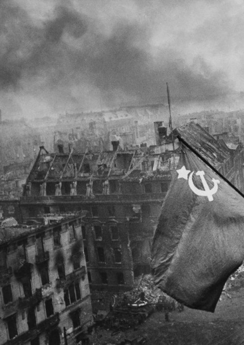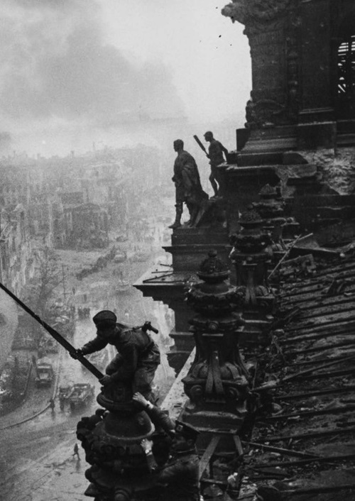 Наша национальная гордость – «Знамя Победы над Рейхстагом» – тоже известна всему миру, только немногие знают имя Евгения Халдея. Военный корреспондент никогда не скрывал постановочный момент своего сложнейшего снимка. Он шел к нему все четыре года войны, уверенный, что месткомовская красная скатерть, прошедшая с ним в боях, непременно пригодится в поверженном Берлине. С этой уверенностью дошел сюда не он один. Десятки красных флагов то там, то здесь алели на руинах в тот весенний день, подтверждают все участники операции.