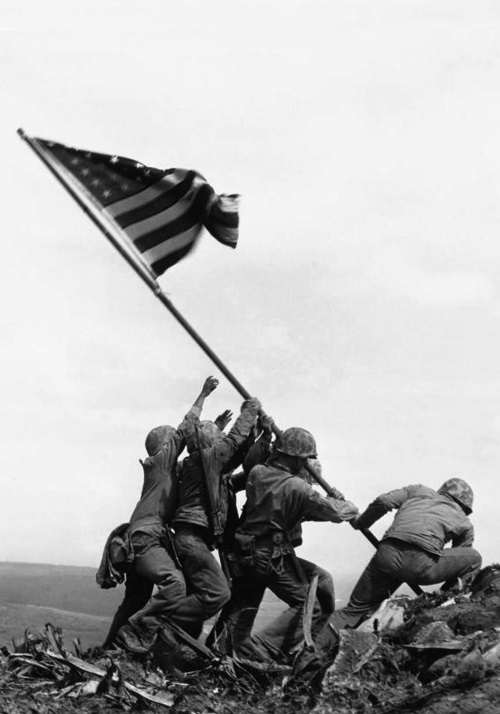 Уже в первое послевоенное десятилетие на основе фотографии был возведен в бронзе и граните один из главнейших национальных памятников – Мемориал корпусу морской пехоты США у стен Арлингтонского кладбища.