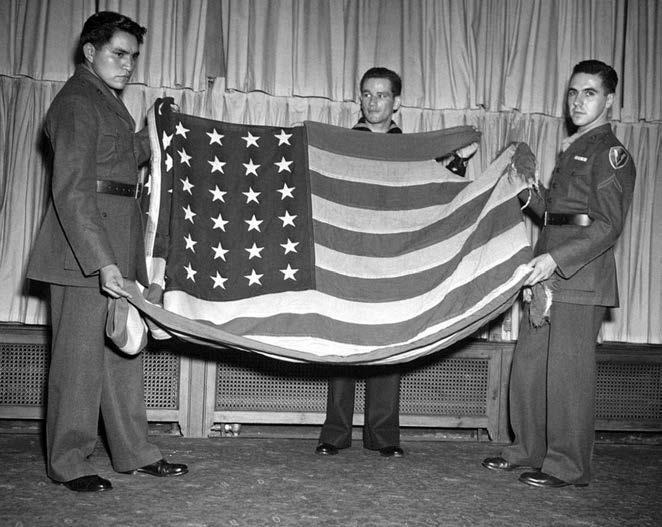 Камера Джо Розенталя схватила мгновенный своеобразный ремейк подвига морских пехотинцев США в разгар жесточайших боев водрузивших звездно-полосатый флаг над японским островом 23 февраля 1945 года. Почему ремейк? Просто тот первый флаг начальству показался недостаточно «видным» и был дан приказ установить другое – большое полотнище. Этот-то момент и запечатлен на единственном снимке корреспондента. Тут было не до постановки, в которой тогда, да и теперь нет-нет да и упрекнут Розенталя. С невероятной скоростью размноженный всеми возможными средствами в звании «кадра на все времена», снимок этот принес корреспонденту в том же году (вопреки регламенту, что беспрецедентно) престижнейшую Пулитцеровскую премию, а стране в облигациях военного займа миллиардные прибыли для завершения войны. Трое выживших с фотографии были отозваны в Америку и поставлены на службу агитационной кампании той практичной идеи Рузвельта по патриотическому сбору денег. Уже в конце 40-х эти трое повторят поднятие флага (кстати сказать, подлинного), точно следуя снимку, в кадрах художественного фильма «Пески Иводзимы» Аллана Дуона. Трагическая фигура единственного индейца на снимке Айры Хейза, не пережившего испытание «медными трубами», воспета и в широко исполняемой «Балладе об Айре Хейзе» и в 1961-м была воспроизведена на экране Тони Кертисом в «Аутсайдере» Дельберта Манна.