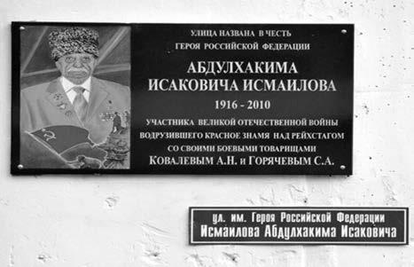 Люди на снимке тогда никого не заинтересовали, они навеки стали безымянным символом Победы. Потому в учебниках истории бойцы с фотографии Халдея – киевский пожарный Алексей Ковалев, дагестанский крестьянин Абдулхаким Исмаилов и охранявший их белорус Алексей Горычев, не значились. По законам того времени честь первенства была отдана Егорову и Кантария, русскому и грузину. Лишь полвека спустя в репортаже Би-Би-Си прозвучало имя Ковалева. Тогда же он, как кавалер трех орденов Славы, появился в телевизионной передаче Николая Сванидзе, где между прочим зашел разговор и о фотографии Халдея. Ковалев и назвал имя разведчика Исмаилова. В 1996 году на подступах к своему 80-летию Исмаилов – стараниями руководства Дагестана стал Героем России (а у него и без Рейхстага героическая биография) и в почете и уважении прожил в своем селе в Хасавюртском районе до 2000 года. Теперь там и улица, и школа носят его имя, да и в Махачкале бывшая улица Энгельса переименована в улицу Исмаилова.