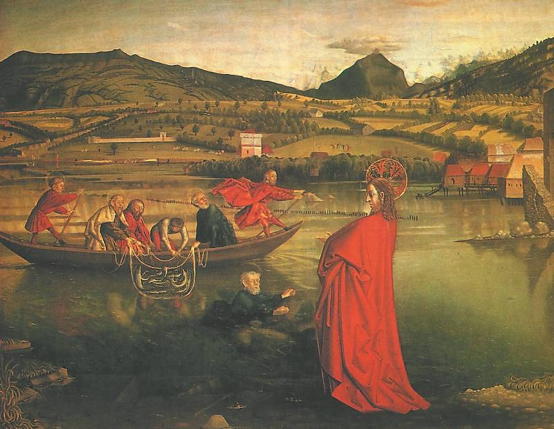 К. Виц. «Чудесный улов рыбы», левая створка алтаря Св. Петра, 1444, Музей искусств и истории, Женева