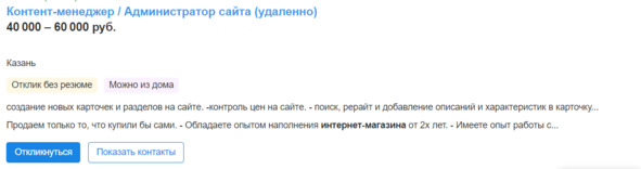 И каждый заказчик хотел своего: профессия контент-менеджера была новая, что требовать от исполнителя, не понимал никто. Каждый заказчик искал специалиста с различными навыками и опытом. Одни – суперспециалиста, который умеет и знает все, начиная от разработки интернет-магазина и заканчивая SEO-продвижением. Вторые ограничивались заполнением карточек магазина. Третьим нужен был только контент или ведение социальных сетей.