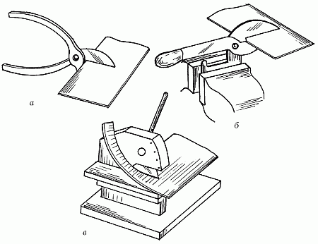 Их используют для резки нетвердого металла, – такого, как алюминий, латунь, медь, полосовая сталь. Ножницы бывают ручные, силовые и рычажные (рис. 5).