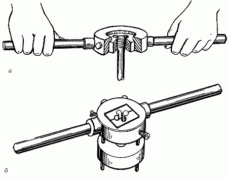 Рис. 7. Воротки: а – для круглых плашек; б – для раздвижных плашек с направляющим кольцом