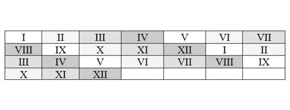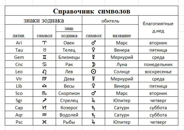 Для того чтобы определить, благоприятен ли день, использовалась следующая таблица, чаще всего ее просто держали в голове.