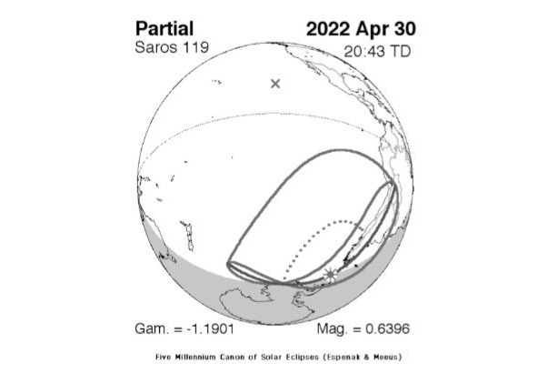 В метоновом цикле это первое затмение в серии из четырех (30.04.2022 – 30.04.2041 – 30.04.2060 – 1.05.2079).