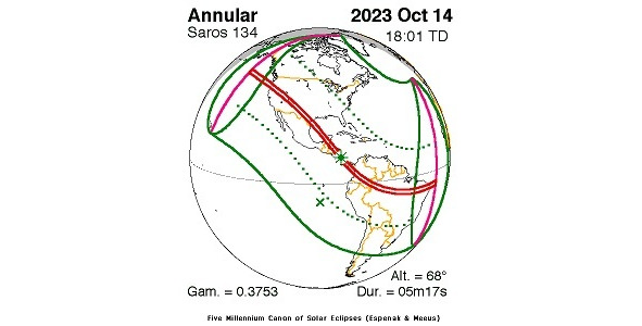 Зона наблюдения: кольцеобразное солнечное затмение пересечет Северную, Центральную и Южную Америку. Это затмение увидят миллионы людей в Западном полушарии.