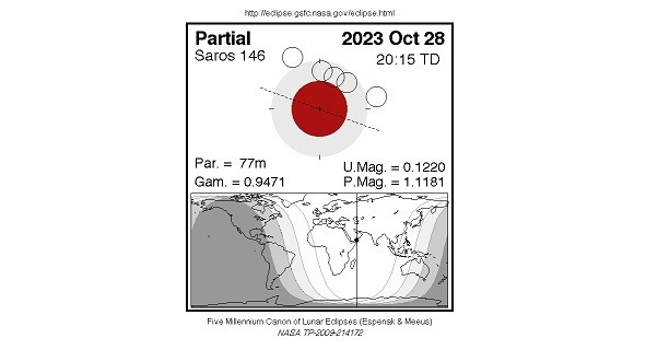 В метоновом цикле это четвертое, последнее затмение в серии из четырех (29.10.1966 – 28.10.1985 – 28.10.2004 – 28.10.2023).
