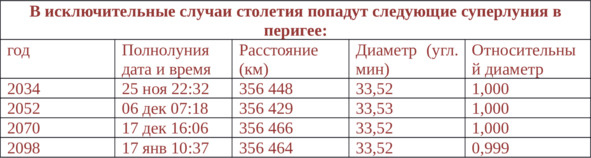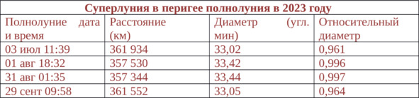 В исключительные события попадают те, в которых расстояние до полнолуния меньше или равно 356 800 км, и окончательные перигеи полнолуния (или полные суперлуния) за столетие, в которых расстояние до полнолуния меньше или равно 356 500 км. Суперлуния в перигее 2023 г. в исключительные случаи не попадают.