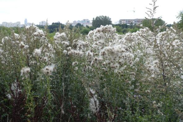 Рис. 14. Бодя́к обыкновенный в стадии созревания семян, лат. Círsium vulgare