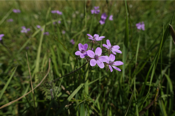 Рис. 2. А́истник обыкнове́нный (аистник цику́товый, или гра́бельки, или жураве́льник цикутовый), лат. Eródium cicutárium/Аистник Манескави, лат. Erodium manescavi