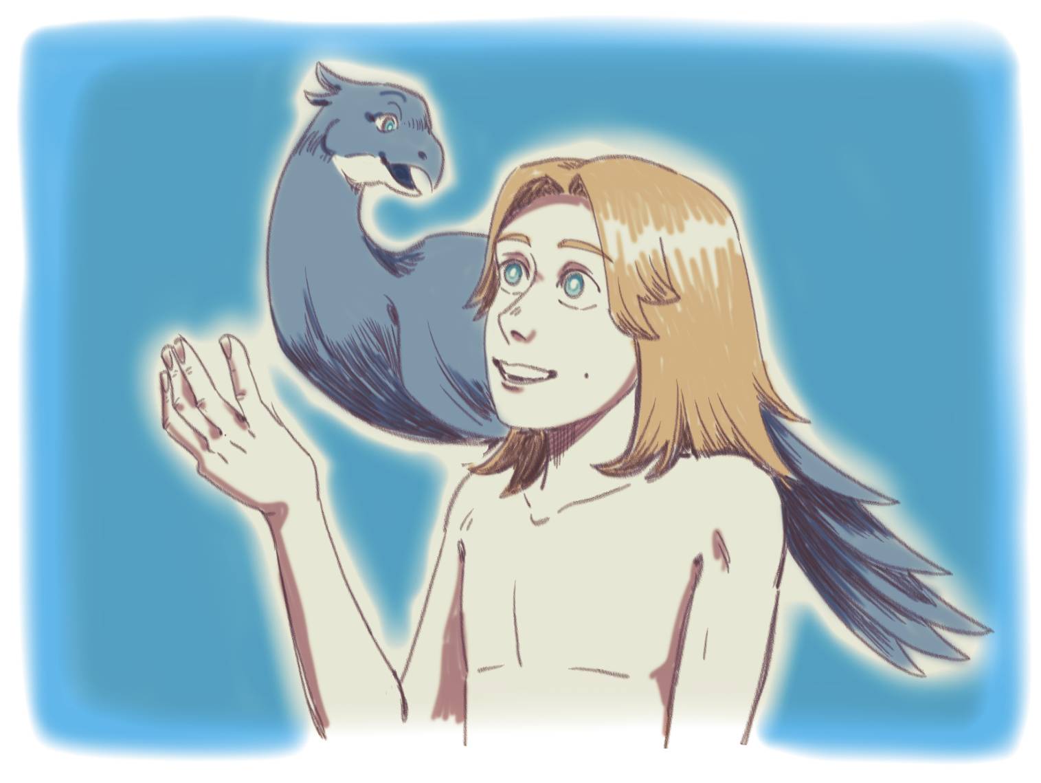 – Ящера с гребнем! Ящера с гребнем! – запричитал Вегавис, который проплывая по речке, что огибала зелёный луг, и услышал беседу птички Эр с Великашей. Тогда, заинтересовавшись, он выбрался из воды, чтобы поддержать беседу и сообщить новость.