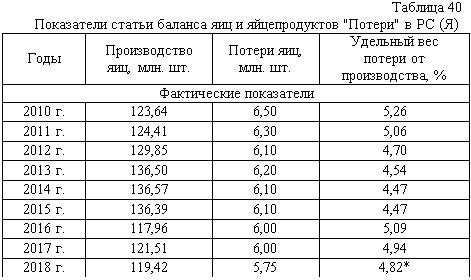 – фактические показатели статьи баланса яиц и яйцепродуктов "Потери" за 2010-2017 гг.
