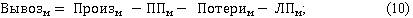 Статья "Вывоз" формируется по итогам расчетов всех остальных статей баланса и оценки имеющегося потенциала вывоза из республики отдельных сельскохозяйственных продуктов. Учитывая, что прогнозные объемы личного потребления относительно объемов производства низкие, были рассчитаны прогнозные значения вывоза мяса лошадей и оленины (мясо домашних и диких оленей) по следующей формуле: