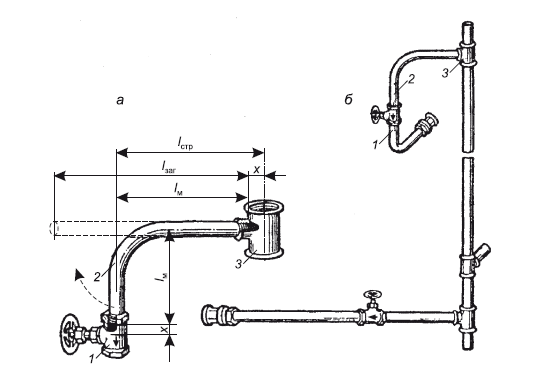 Монтажная длина /м – это чистая длина детали без навернутых на нее фасонных частей или арматуры. Таким образом, монтажная длина меньше строительной на величину, равную размеру от оси фасонной части или арматуры до торца трубы детали, т. е. на величину так называемого скида.