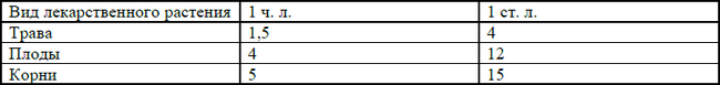 Следует подчеркнуть важность соблюдения дозировок растительных препаратов, особенно при лечении детей. Можно избежать ошибок, если запомнить следующее правило: на каждый год жизни ребенка требуется 1/20 дозы взрослого. Для определения веса лекарственных растений желательно иметь аптечные весы. Если их нет, то для определения приблизительных доз можно пользоваться следующей таблицей: