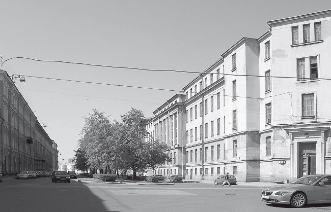 В первой четверти XIX века на участке № 10 появился каменный одноэтажный нежилой корпус. В 1829 году его надстроили двумя жилыми этажами. С тех пор здание не претерпело значительных изменений. Вместе с № 8 дом перешел к ГОИ, которому принадлежат также дома № 12, 14, 16. В глубине его участка, на оси, продолжающей Большой проспект, в 1952 году было построено монументальное здание этого института по проекту архитектора С.И. Евдокимова.