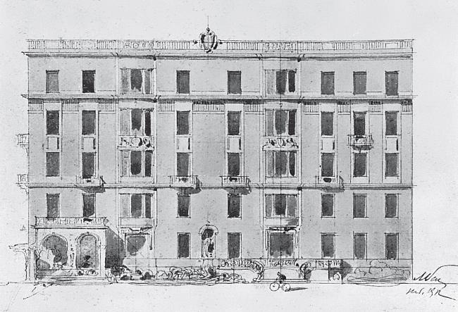 Дом № 57 по Большому проспекту. Эскиз фасада. Проект Л.Н. Бенуа