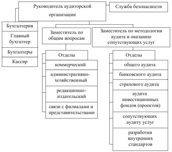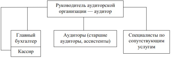 Возглавляет аудиторскую организацию – руководитель аудиторской организации. Он ведет переговоры с клиентом, назначает руководителя аудиторской проверки, формирует состав группы проверки клиента, выражает мнение о достоверности отчетности клиента в аудиторском заключении. Лицо, являющееся единоличным исполнительным органом коммерческой организации, а также индивидуальный предприниматель (управляющий), которому по договору переданы полномочия исполнительного органа коммерческой организации, должны быть аудиторами. В случае если полномочия исполнительного органа коммерческой организации переданы по договору другой коммерческой организации, последняя должна быть аудиторской организацией.