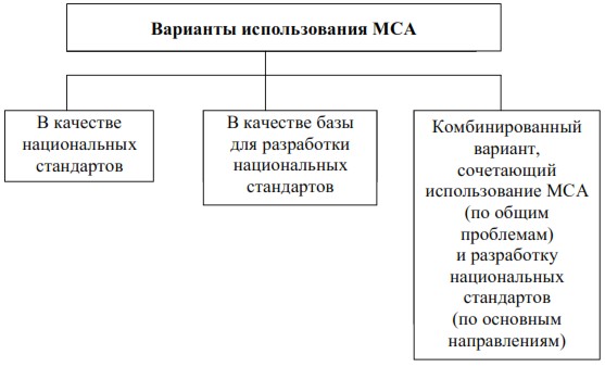 Например, национальные стандарты существуют в Англии, Канаде, США и Швеции, но требования МСА в этих странах принимаются к сведению в практической деятельности. В ряде государств (Австралии, Бразилии, Голландии, России) МСА принимаются за основу при разработке национальных регламентирующих документов. Кроме того, существуют государства (Кипр, Нигерия и др.), где МСА приняты в качестве национальных.