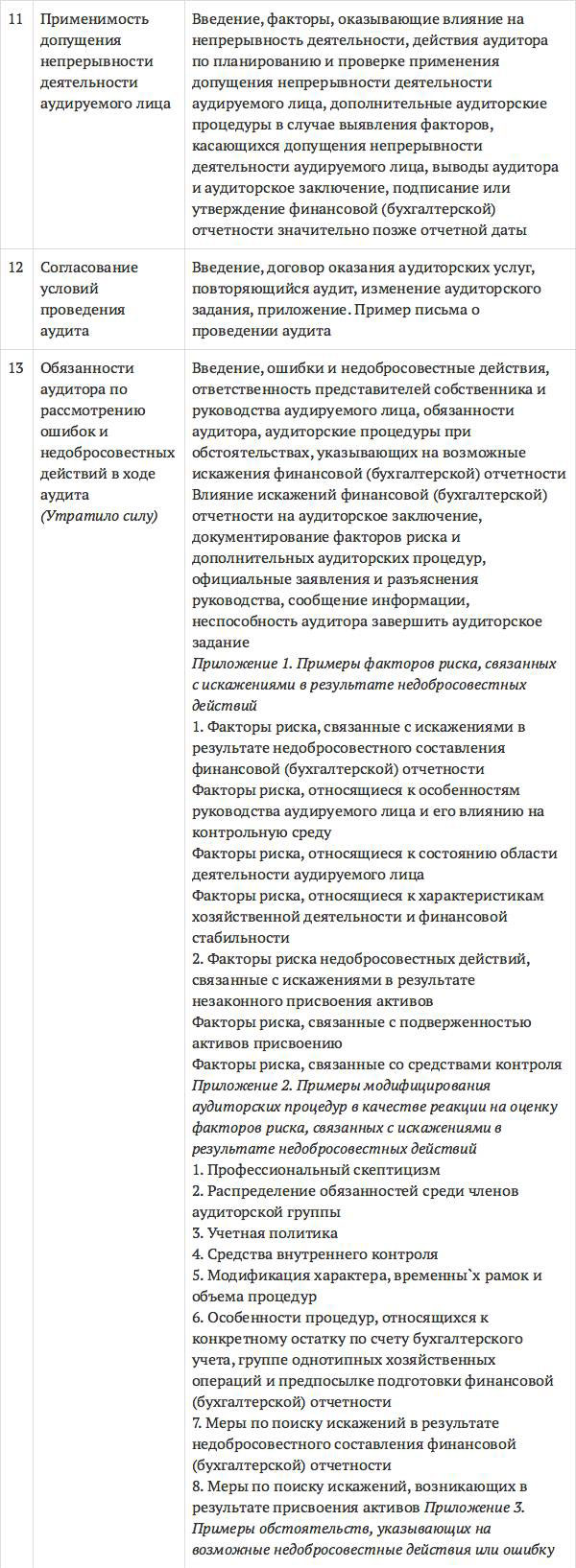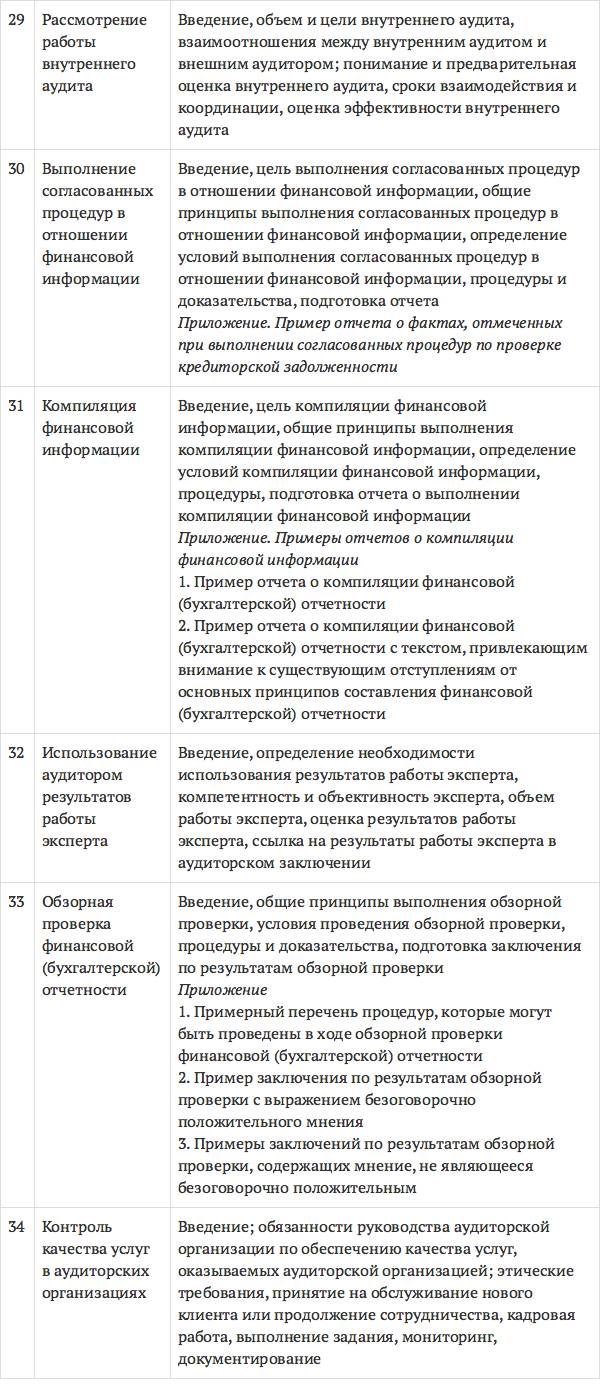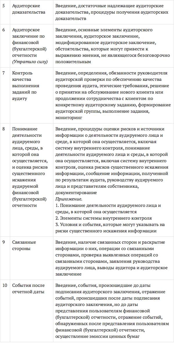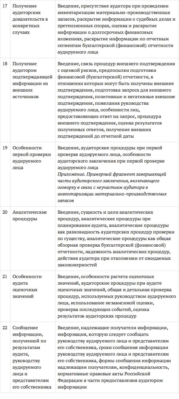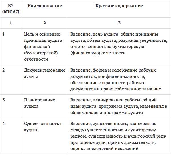 Каждый федеральный стандарт аудиторской деятельности состоит из нескольких разделов, образующих структуру стандарта.