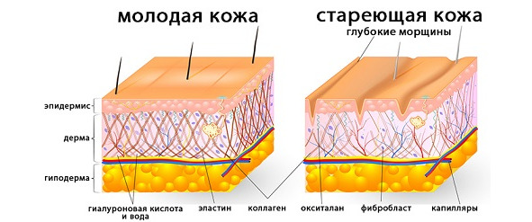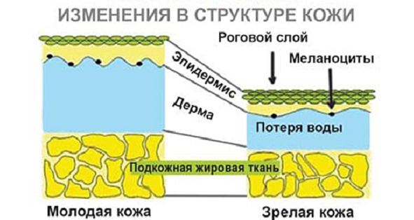 5. средний слой – дерма также становится тоньше и любые повреждения заживают медленнее.