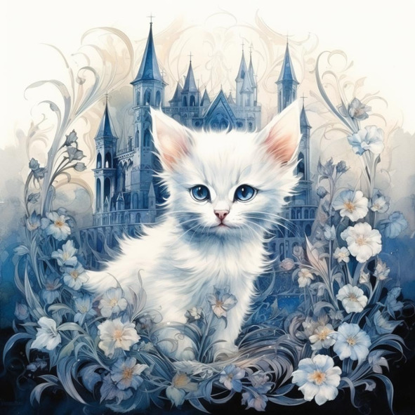 В давние времена в живописной небольшой деревушке, раскинувшейся у холма, на котором возвышался старинный Заброшенный Замок, жил маленький белый котёнок по имени Оскар. Он был очень любознательным и к тому же отважным, поэтому каждый вечер, как только угасало закатное пламя и в небе вспыхивали яркие звёзды, отправлялся на прогулку по заросшей тропинке, ведущей к этому загадочному строению, маячившему темным силуэтом на фоне небес. По этой дорожке уж много лет никто не ходил, и Оскару приходилось, порой, продираться сквозь колючие заросли репейника, оставляя на острых иголочках цветов маленькие клочки своей чудесной белой шёрстки. Однако его это не останавливало, и с каждым днём он проходил всё дальше и дальше, приближаясь к своей цели. Но всякий раз котёнку приходилось отступать. Он так уставал бороться с зарослями, что никак не мог добраться до Замка и исследовать его, а ведь это была его заветная мечта.