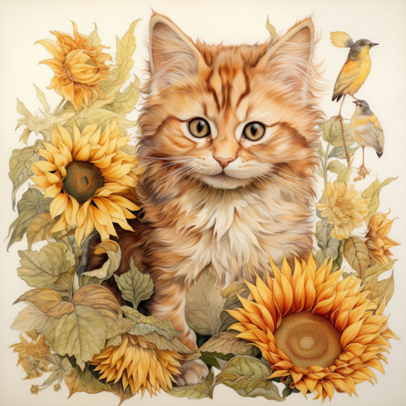 Однажды Басик забрёл очень далеко, изучая новые растения, и вдруг он наткнулся на огромный цветок, какого не видел ещё никогда. Этот цветок был значительно выше и больше не только самого котёнка, но и всех цветов, которые он знал в саду. Котик замер от удивления, когда цветок приветливо наклонился к нему и засиял чудесным ярким светом. Басик был поражён этим необычным свойством незнакомца и спросил: