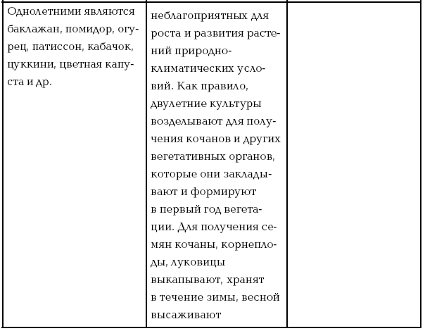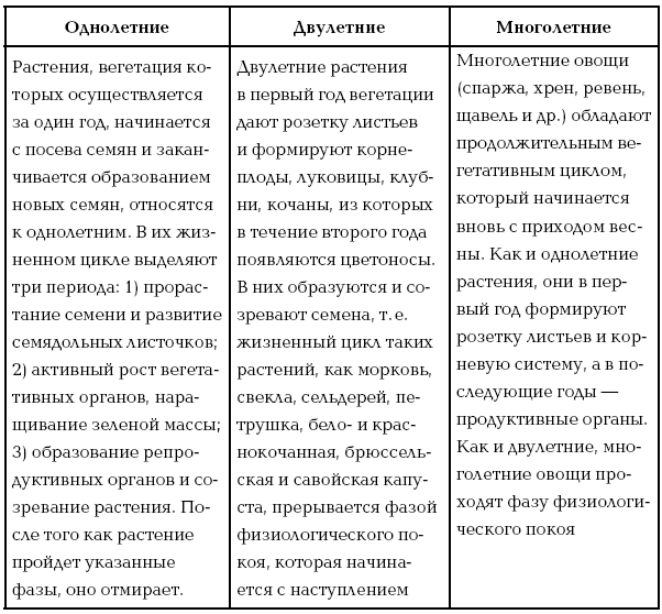 Овощные растения можно разделить на группы, учитывая продолжительность их вегетативного цикла (табл. 2).
