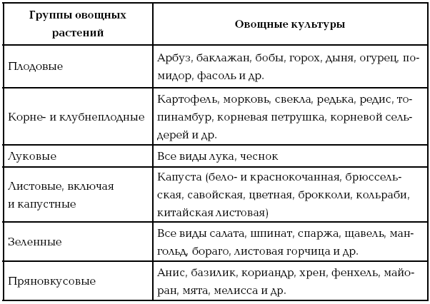 С точки зрения биологии, овощные растения входят в состав различных семейств (табл. 1).