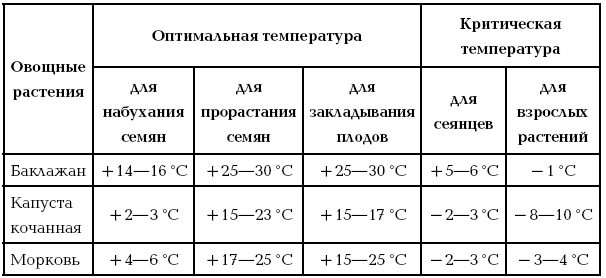 Потребность овощных растений в тепле в зависимости от периода вегетации