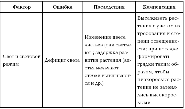 При выборе места посадки овощных культур необходимо избегать возможных ошибок, в чем поможет таблица (табл. 5).