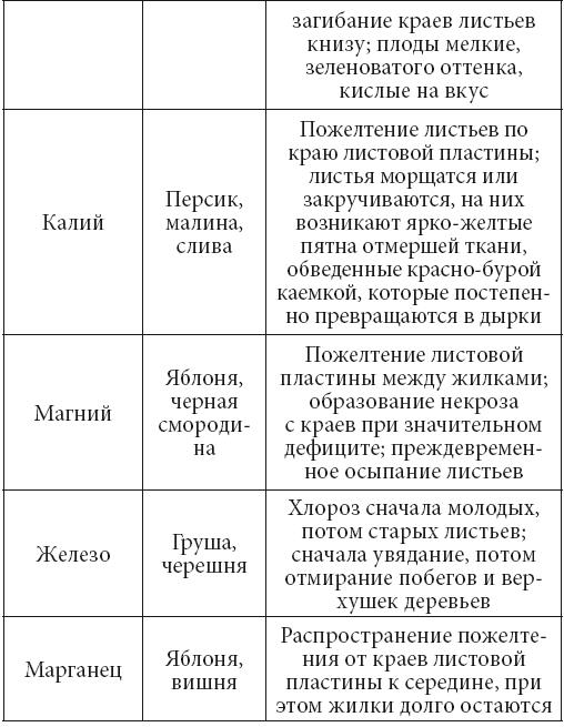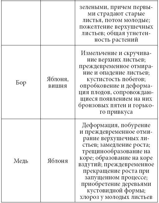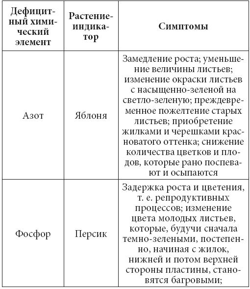 Симптомы недостаточности питания хорошо изучены у культурных растений, которые тоже надо рассматривать в качестве индикаторов (табл. 2).