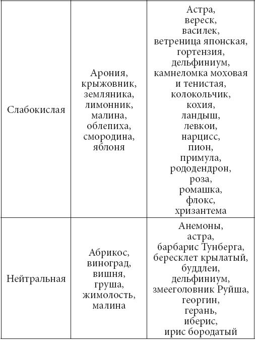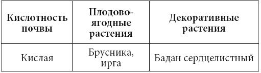 Зная кислотность почвы в саду, можно составить такие комбинации плодово-ягодных и декоративных растений (табл. 3), которые украсят его и обеспечат достойный урожай плодов.