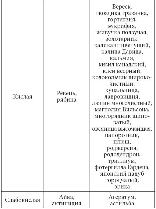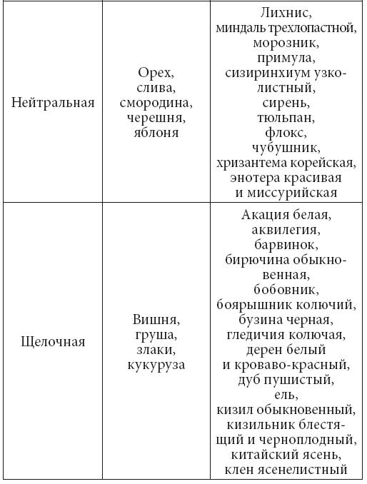 Однако следует сказать и о том, что среди плодовых и декоративных растений, которые чаще всего выращивают садоводы-любители, есть и такие культуры, которые требуют почвы конкретного механического состава и кислотности, т. е., с одной стороны, растения указывают на кислотность почвы, а с другой – позволяют подобрать для сада именно те растения, которые будут хорошо чувствовать себя в данных конкретных почвенных условиях.