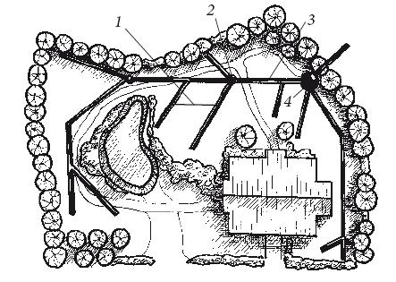 Освоение садового участка сопряжено с различными, часто весьма трудоемкими и сложными работами. В полной мере это относится к его осушению. Показателями для устройства дренажной (от англ. drain — «осушение») системы (рис. 2), способной функционировать длительное время, являются близко залегающие грунтовые воды, верховодка, болото. В противном случае высаживать деревья и кустарники, засевать газон не имеет смысла – корни первых будут вымокать, а последний – выпревать. Кроме того, не миновать разрушения фундамента дома и других построек, вспучивания мощения на патио и дорожках, выдавливания чаши бассейна из грунта и др.