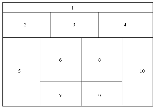Рисунок 2. Примерная планировка огорода площадью 1,5 сотки: 1) кукуруза; 2) садовая земляника; 3) многолетние овощи; 4) тыква, кабачки; 5) картофель; 6) капуста; 7) огурцы; 8) ранний картофель; 9) помидоры; 10) морковь, свекла, репа, брюква, редька