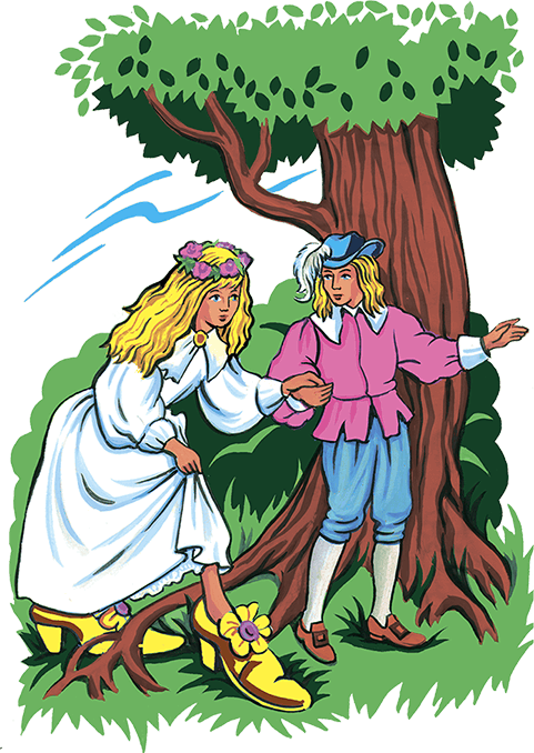 – Можешь не расстраиваться, – сказала принцесса Майский Цветок. – Если тебе хочется иметь большие ноги, то в лесу есть один источник, который может тебе в этом помочь. Прошлым летом я обмыла ножки в том источнике, и они стали расти с каждой минутой, и ничто не могло сделать их меньше. А раз ты показал мне источник Красоты, то я покажу тебе источник Роста.