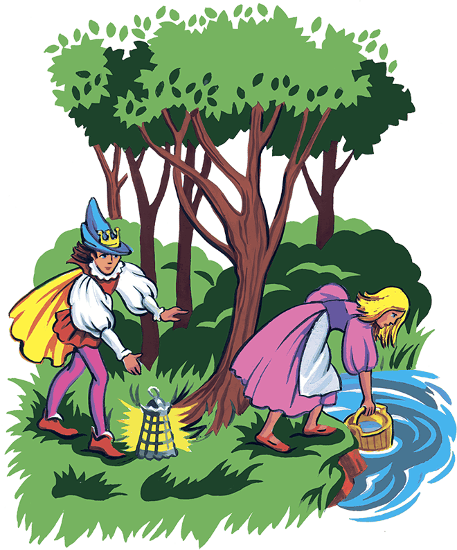 Как только принцесса окунула ножки в воду, они стали уменьшаться, а когда она обмыла их в том источнике три раза, они стали такими же маленькими и изящными, как и у Феиной Ножки.